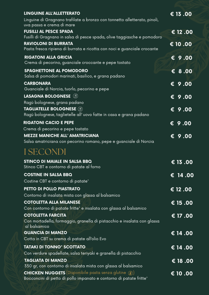 Tutte le proposte del nostro menù sono